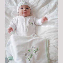 Sweet soft 100% cotton outfits for your wee ones! Our mark of quality is the extra shamrock embroidered to every bum! Approved by Grandmas everywhere!